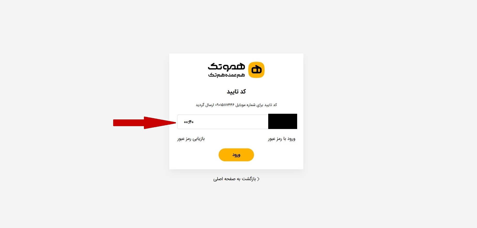 3 کد ارسال شده به شماره موبایل خود را وارد کنید.