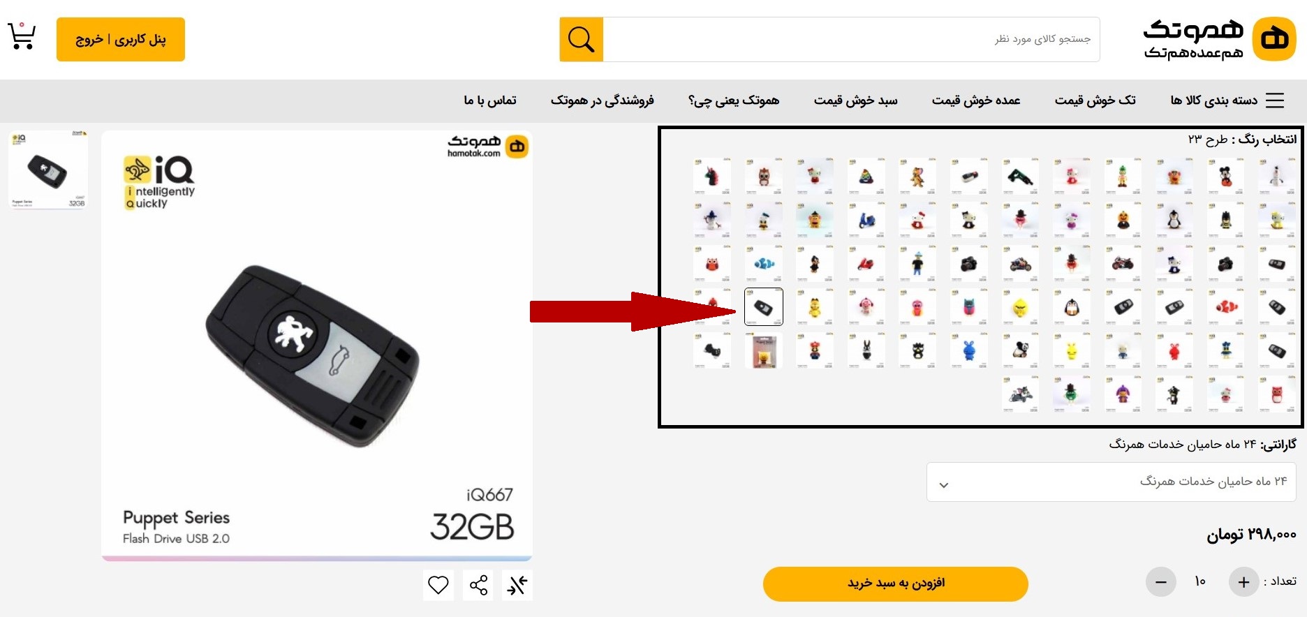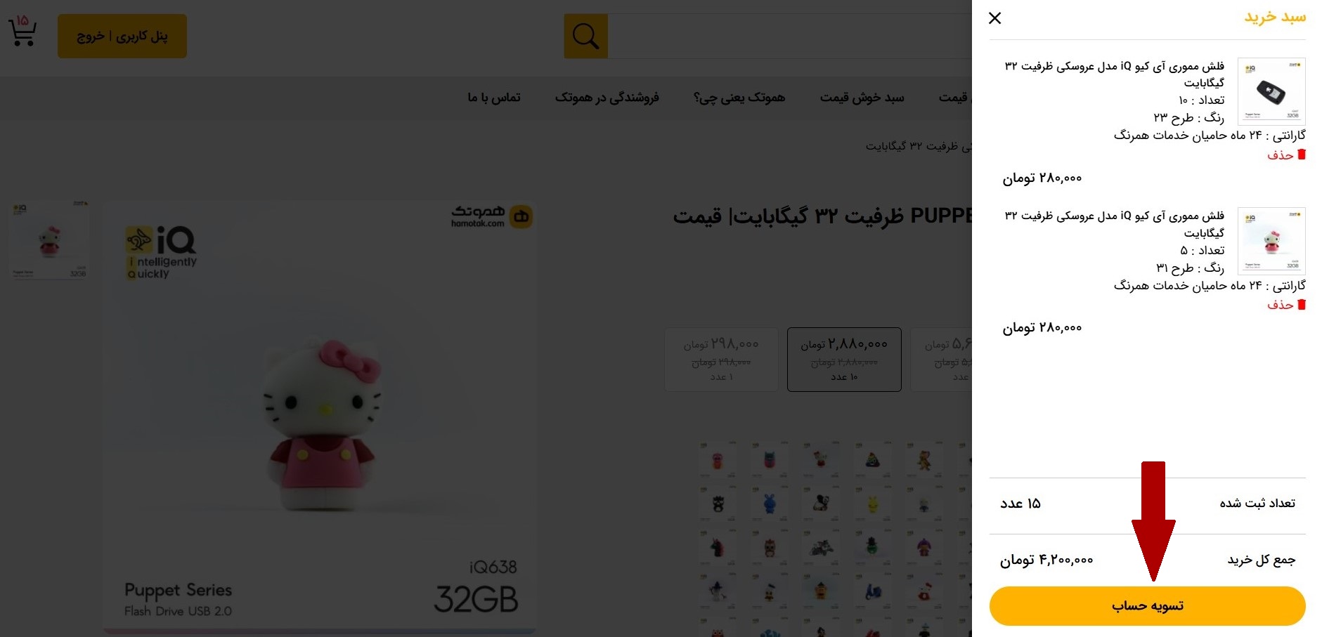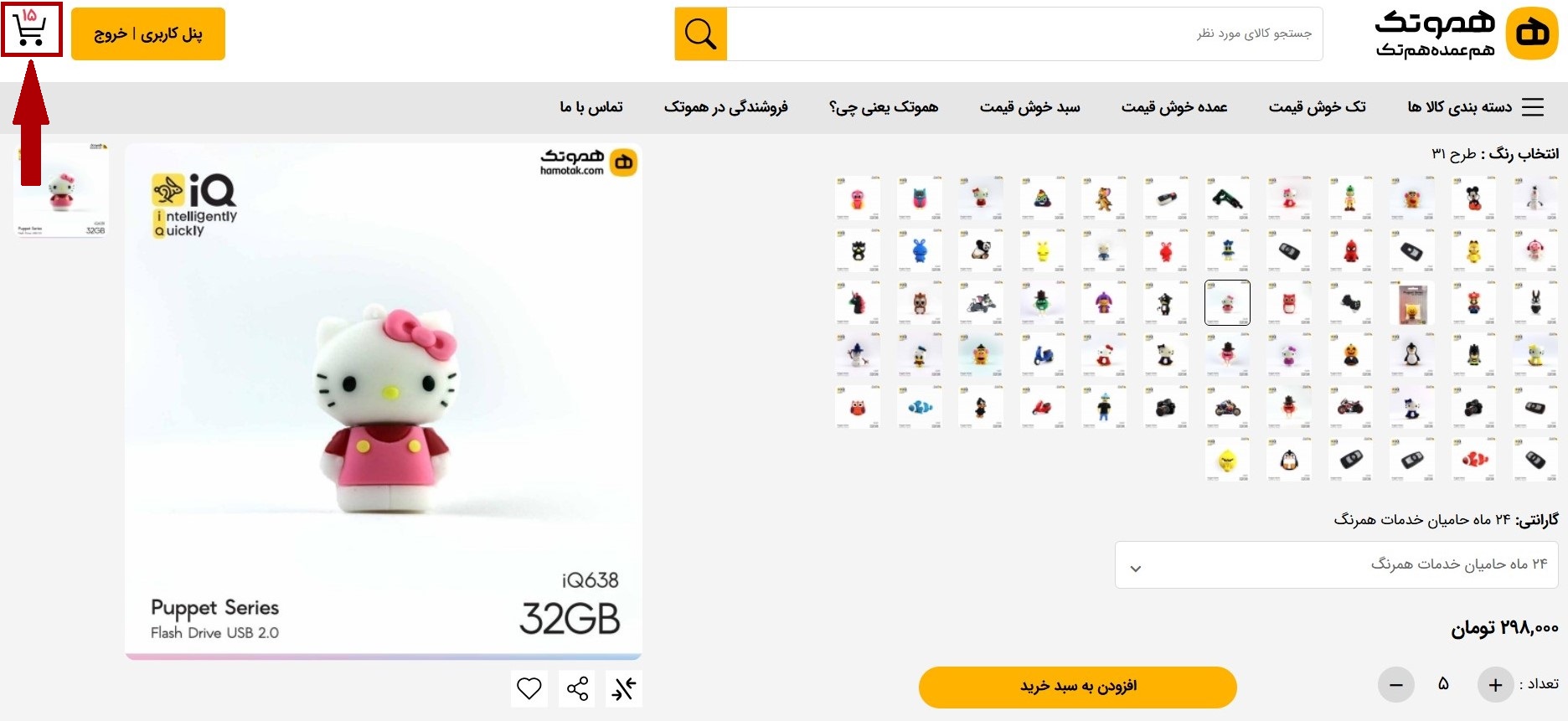 5 پس از افزودن به سبد خرید، روی سبد مشخص شده روی تصویر کلیک کنید.