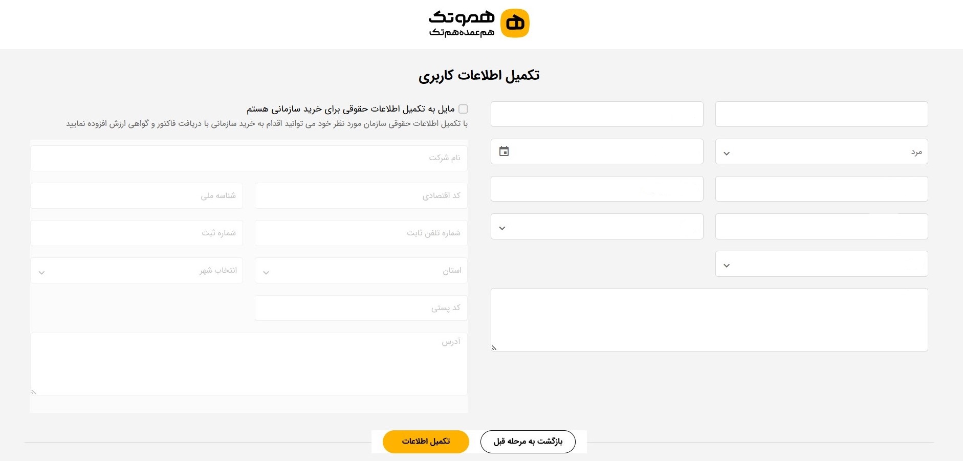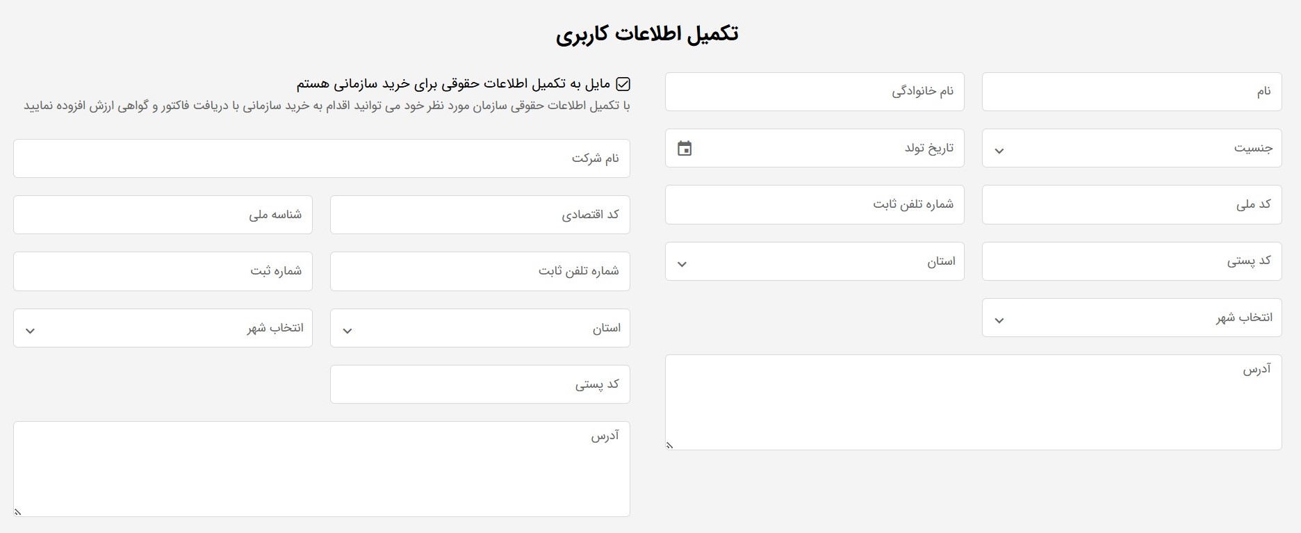 *اگر قصد خرید سازمانی دارید با کلیک روی بخش مربوطه اطلاعات خواسته شده را وارد کنید.