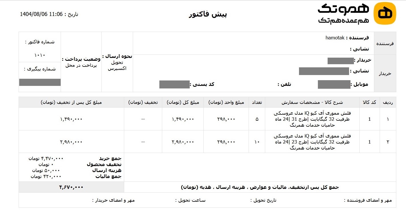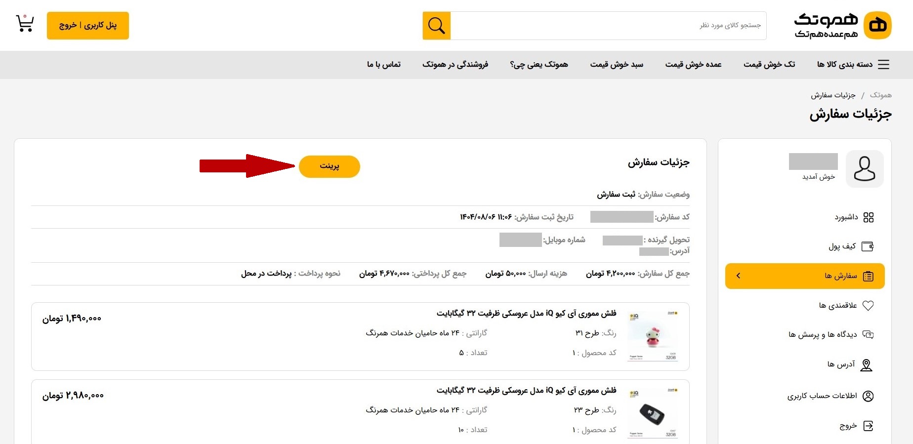 12. می توانید با کلیک روی این گزینه، پرینت فاکتور سفارش خورد را دریافت کنید.