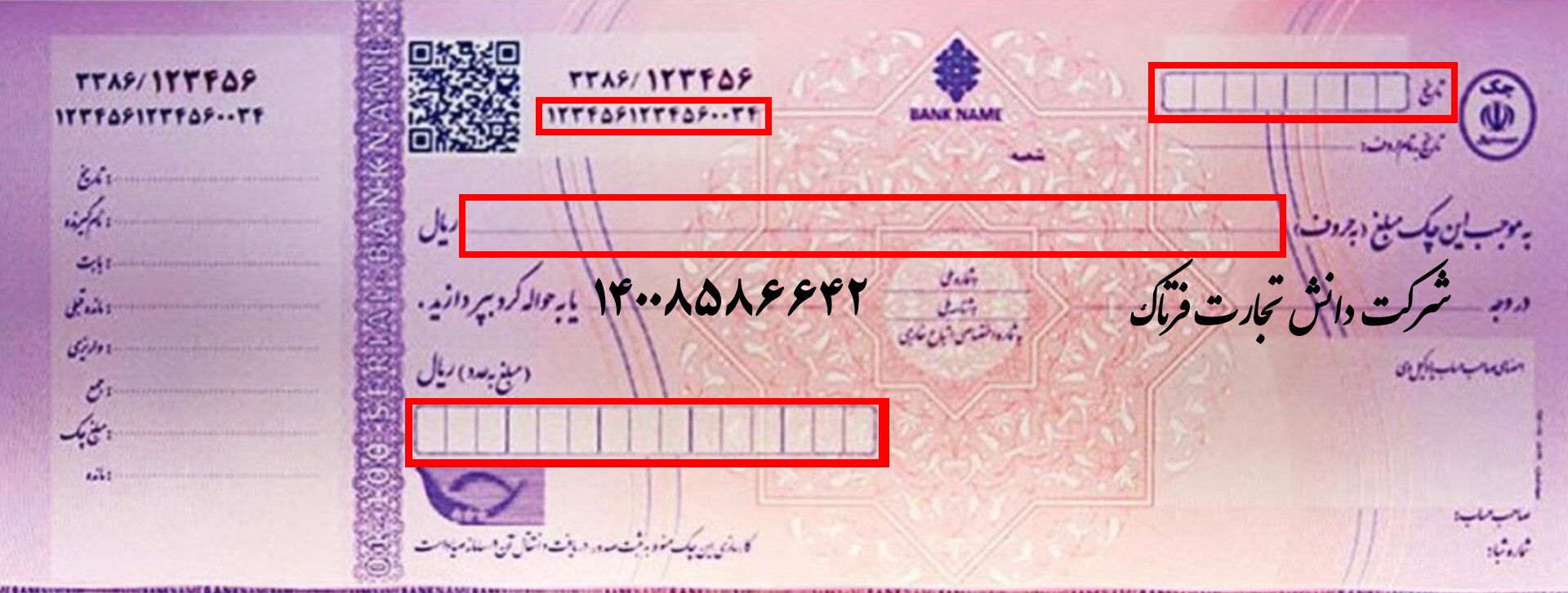 شرایط ثبت صحیح چک صیادی ( طبق تصویر چک نمونه در بالای صفحه )