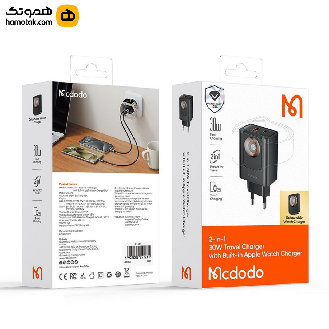 دارای تراشه هوشمند تشخیص دستگاه متصل شده به آداپتور و انتقال بالاترین توان موردنیاز خاص آن دستگاه به منظور حفاظت از باتری دستگاه شما