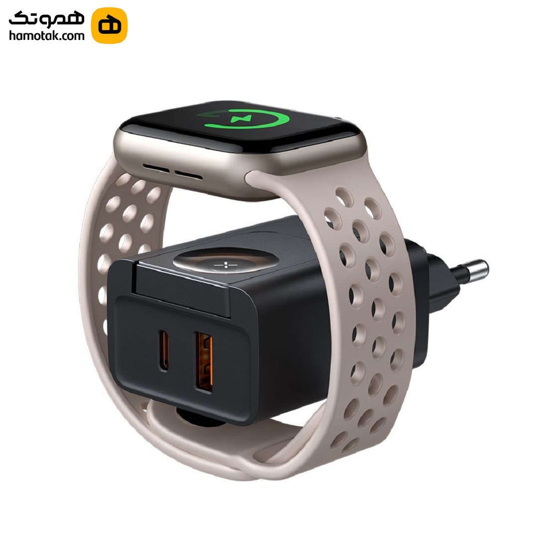 دارای کابل همراه 60 سانتی USB-A به POGO PIN جهت اتصال به شارژر اپل واچ