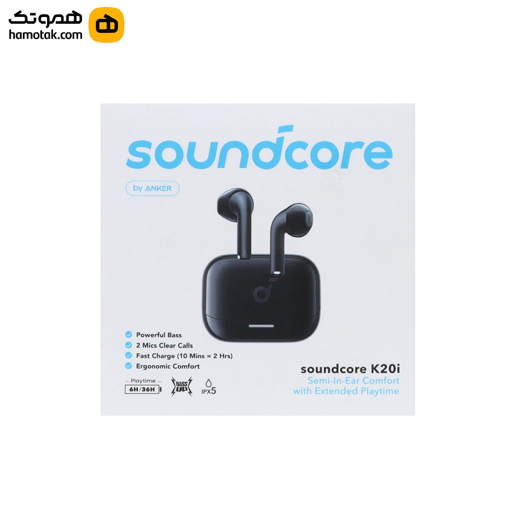 هندزفری Soundcore K20i by Anker یکی از ایربادزهای پرکاربرد و اقتصادی برند انکر (Anker / Soundcore) است که طراحی True Wireless نیمه داخل گوش دارد و برای استفاده روزمره، موسیقی، تماس و حتی بازی مناسب است. این هدفونها از Bluetooth نسخه 5.3 بهره میبرند که اتصال پایدار و کممصرف تا فاصله حدود ۱۰ متر با دستگاههای هوشمند فراهم میکند و پخش بدون قطعی و روان را تضمین میکند.