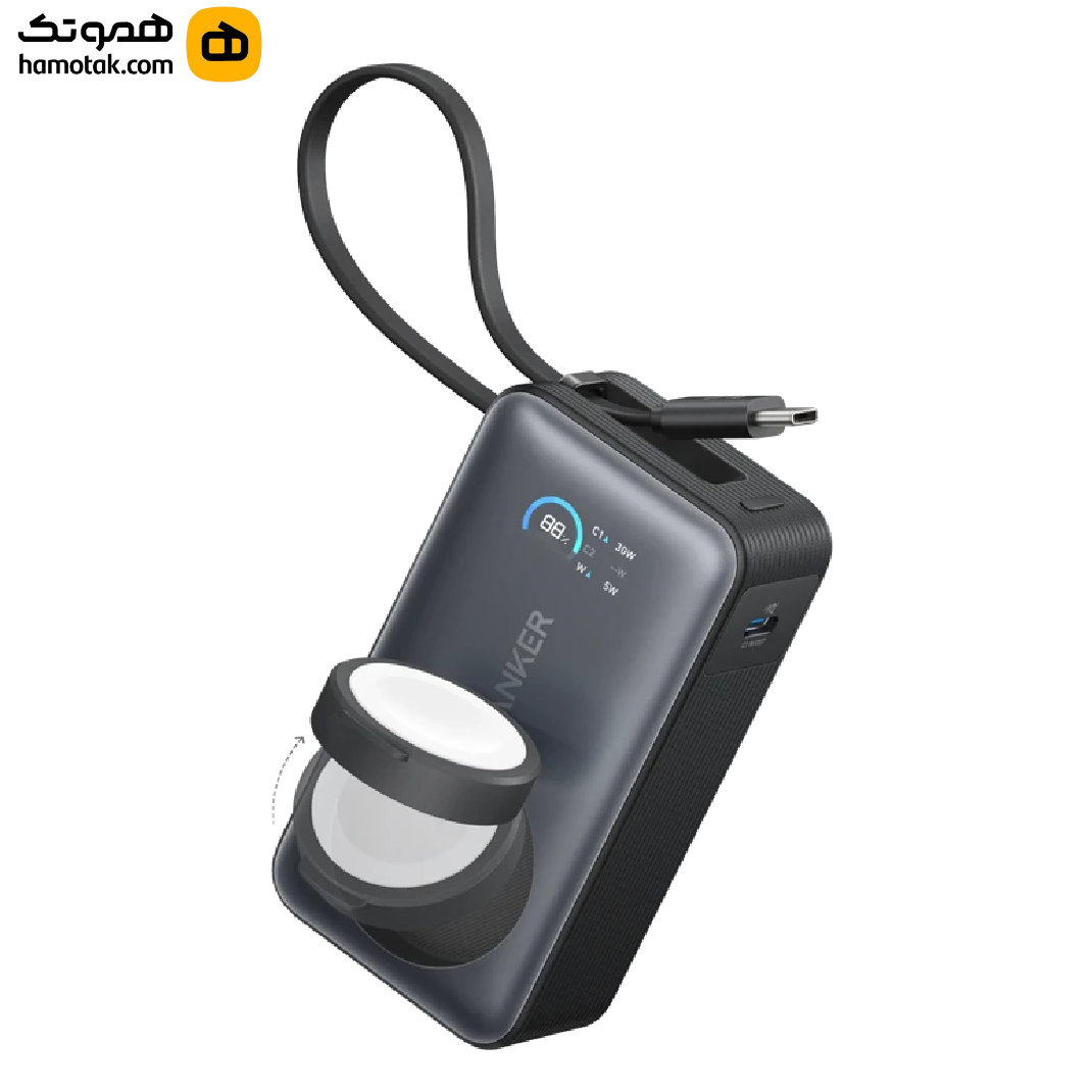 پاوربانک 30 وات انکر مدل A1384 ظرفیت 20000 میلی آمپر ساعت به همراه کابل USB-C