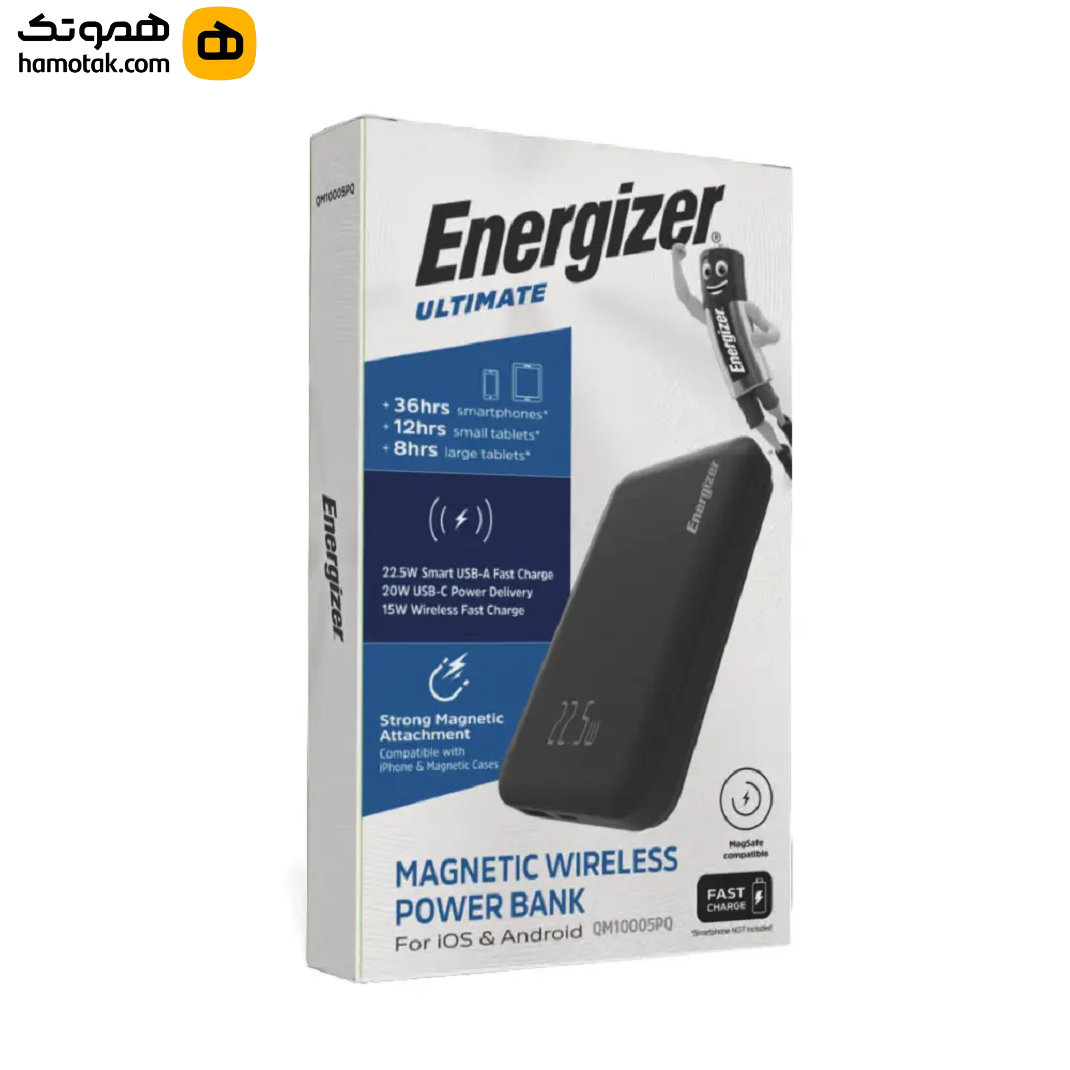 پاوربانک بیسیم 22.5 وات انرجایزر مدل QM10005PQ ظرفیت 10000 میلی آمپرساعت