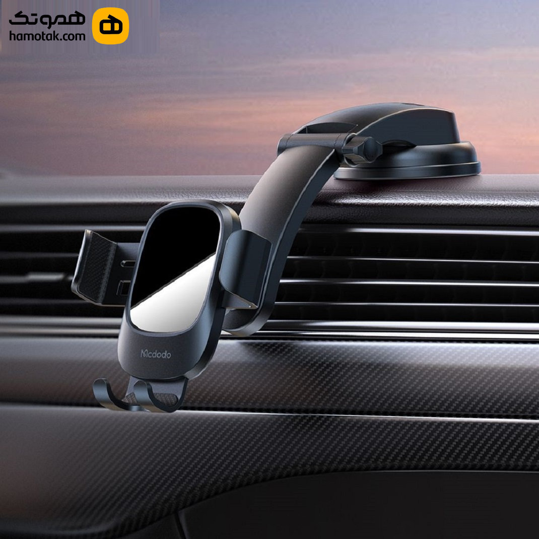 دارای پد مکنده وکیوم جهت چسبیدن محکم و پایدار بر روی داشبورد و یا شیشه اتومبیل