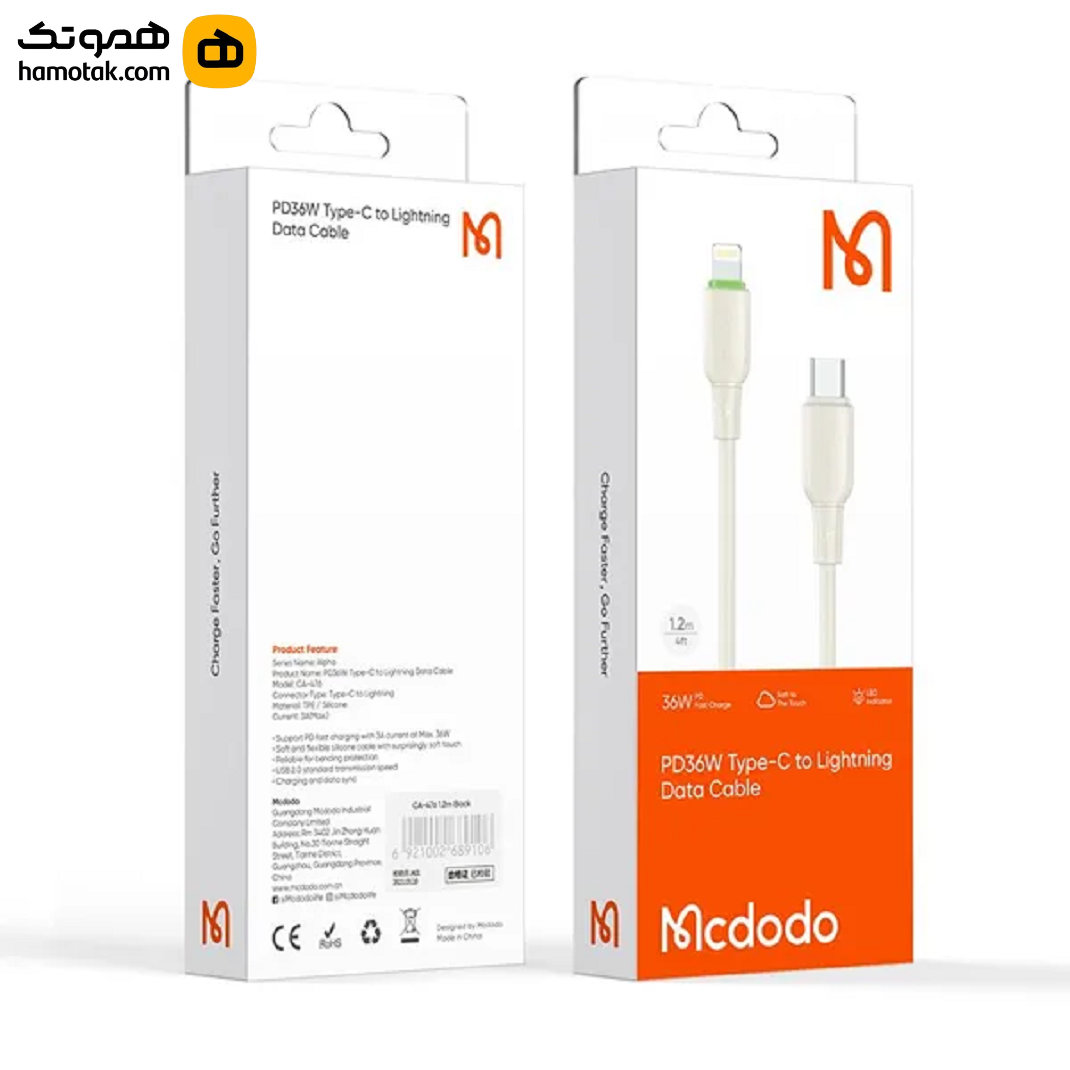کابل تبدیل USB-C به لایتنینگ مک دودو مدل CA-3660 طول 1.2 متر