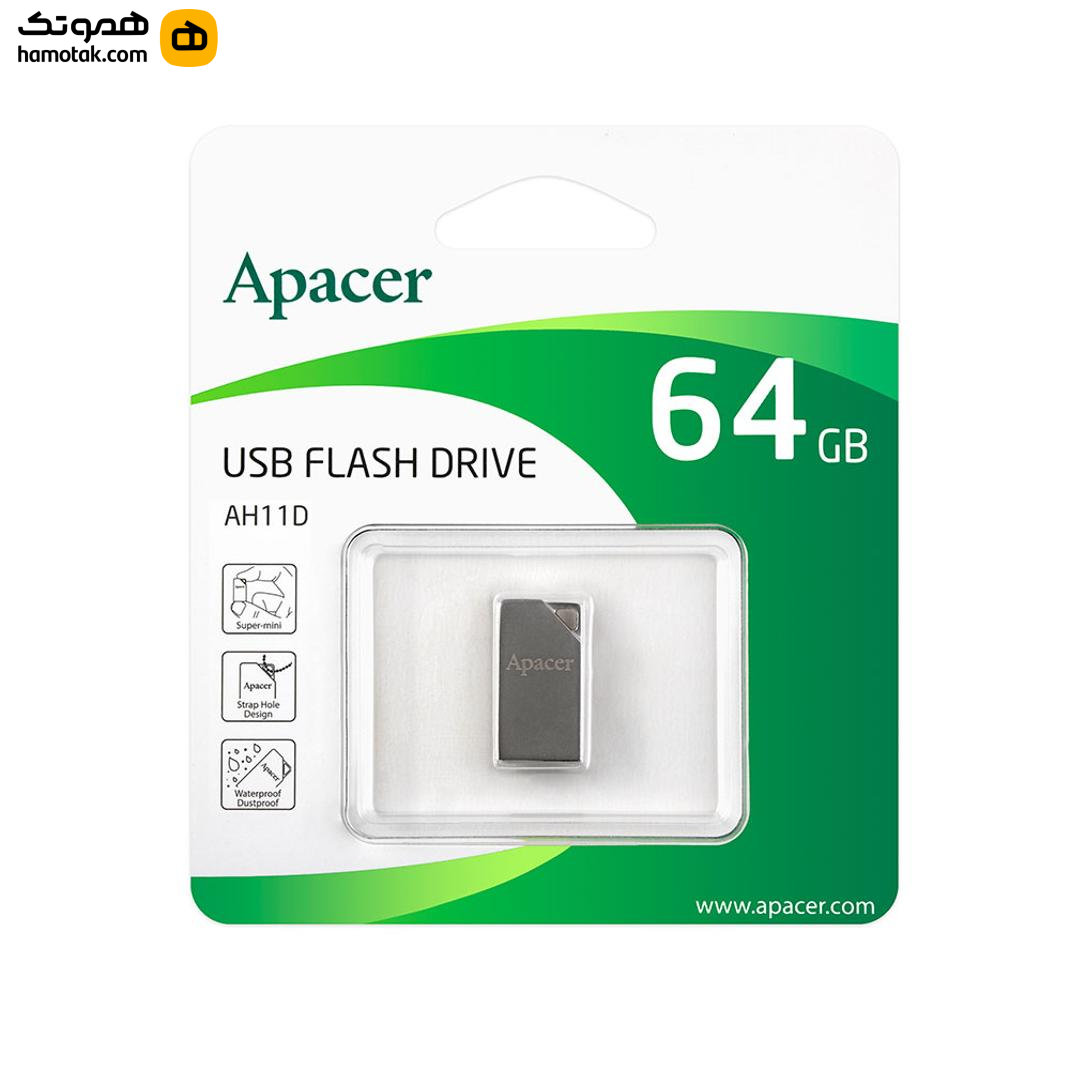 فلش مموری اپیسر مدل AH11D ظرفیت 64 گیگابایت با رابط USB 2.0 و بدنه فلزی مقاوم، گزینه‌ای ایده‌آل برای ذخیره‌سازی ایمن داده‌ها با سرعت بالا است. این محصول با گارانتی متین در فروشگاه اینترنتی هموتک عرضه می‌شود.