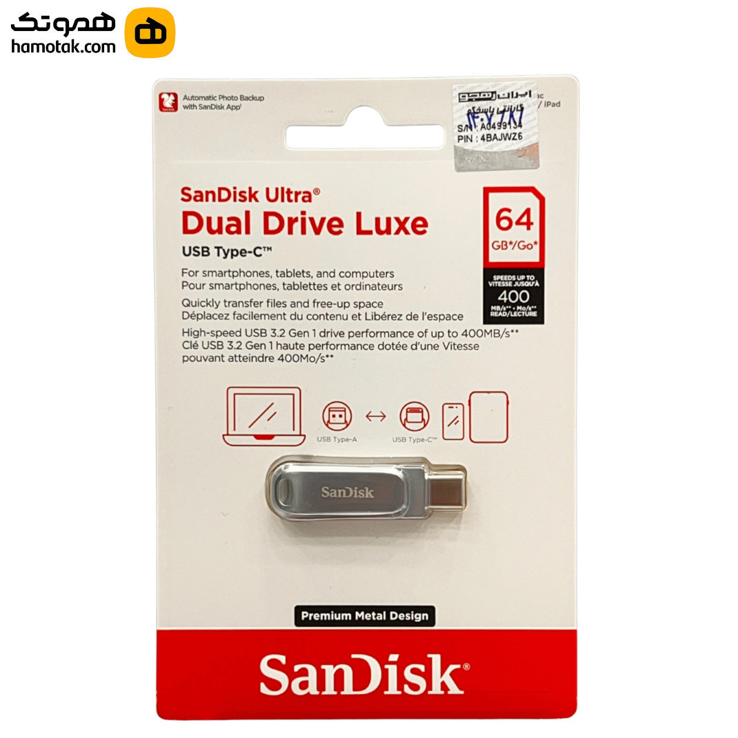 فلش مموری SanDisk Ultra Dual Drive Luxe 64GB از جدیدترین محصولات برند معتبر سندیسک است که با طراحی فلزی زیبا، کیفیت ساخت بالا و سرعت انتقال فوقالعاده، انتخابی ایدهآل برای کاربران حرفهای محسوب میشود. این مدل با دو رابط Type-C و USB Type-A عرضه شده و بهراحتی میان لپتاپ، گوشی موبایل، تبلت و سایر دستگاهها قابل استفاده است.