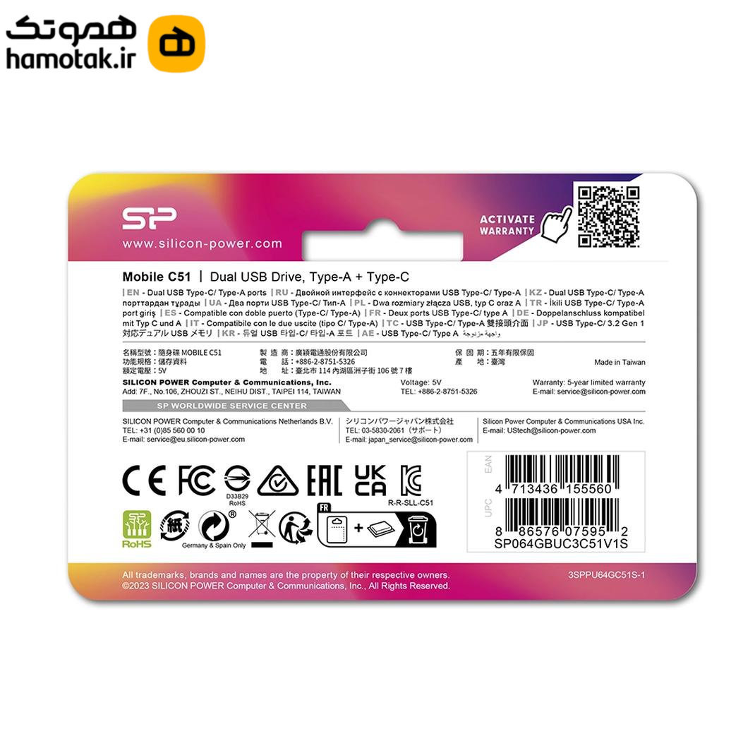 ویژگیهای فلش مموری سیلیکون پاور مدل Mobile C51 ظرفیت 64 گیگابایت