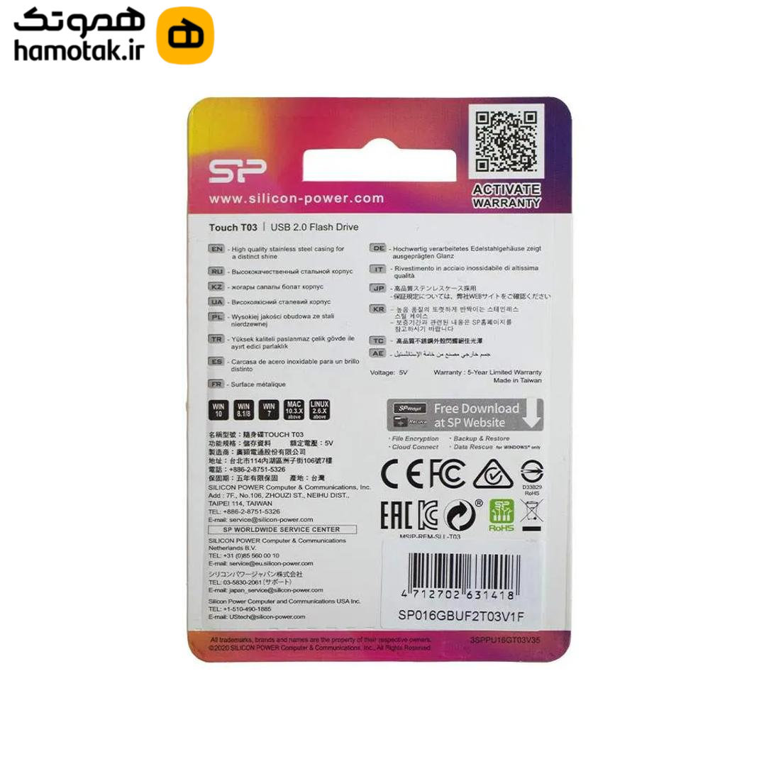 اگر به دنبال یک فلش مموری با قیمت مناسب، طراحی مقاوم و گارانتی معتبر هستید، خرید فلش مموری سیلیکون پاور مدل Touch T03 از فروشگاه هموتک انتخابی عالی برای شما خواهد بود.