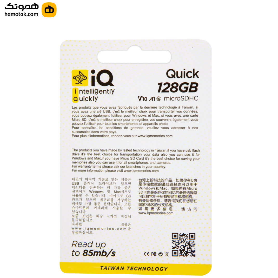 کارت حافظه microSDHC آی کیو Quick V10 A1 با ظرفیت 128 گیگابایت و کلاس 10 یکی از بهترین گزینهها برای ذخیرهسازی سریع و امن اطلاعات در گوشیهای هوشمند، تبلتها و دوربینهای دیجیتال است. این کارت حافظه با استاندارد A1، عملکرد عالی در اجرای اپلیکیشنها و انتقال سریع دادهها را تضمین میکند.