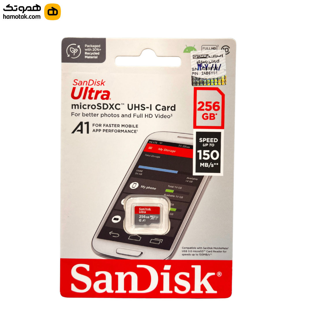 کارت حافظه SanDisk Ultra microSDXC 256GB با سرعت 150MB/s و کلاس 10، گزینه‌ای عالی برای گوشی، تبلت و دوربین است. این مدل با استاندارد A1 و گارانتی معتبر شرکت ایران رهجو، عملکرد سریع و ذخیره‌سازی مطمئن را برای کاربران فراهم می‌کند.