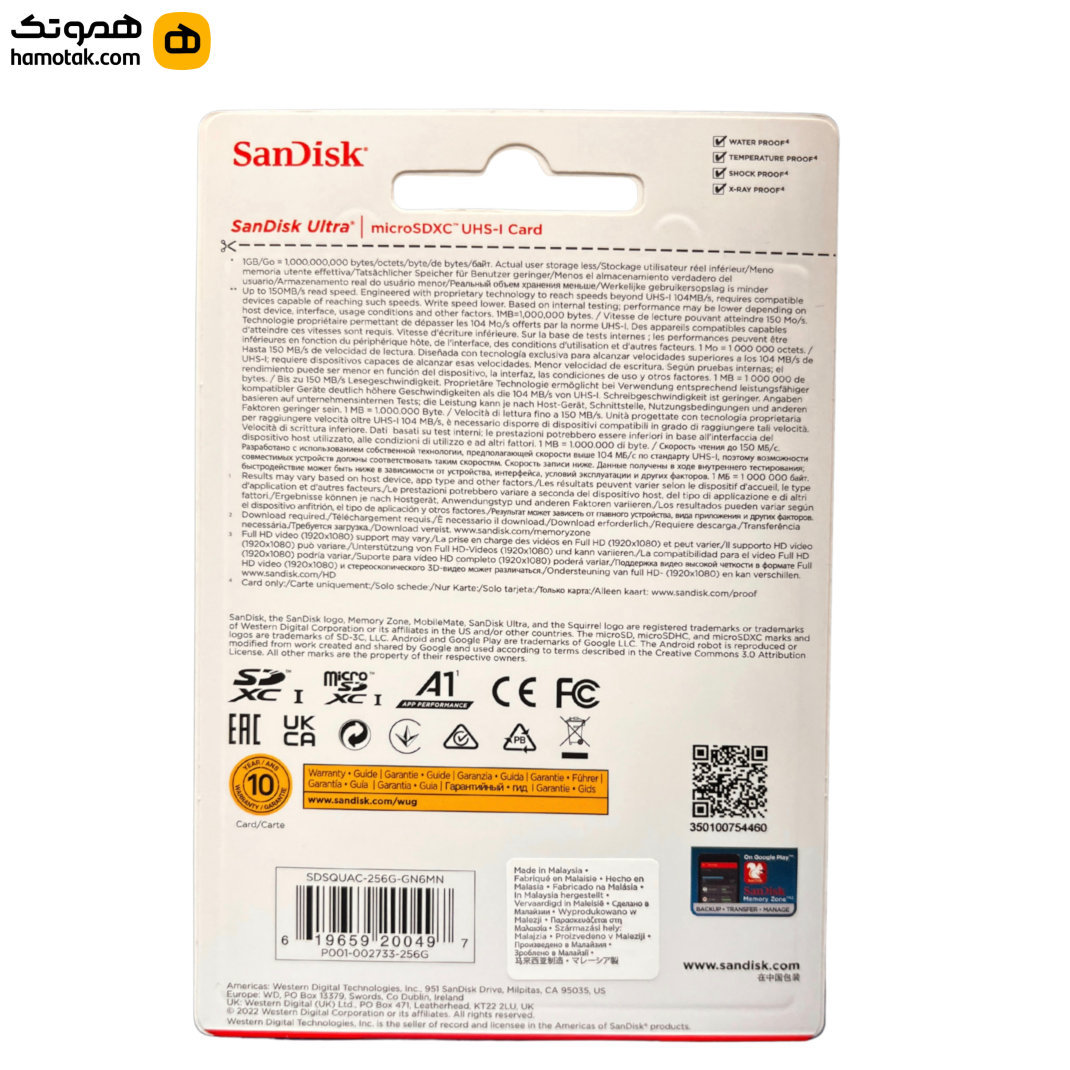 کارت حافظه SanDisk Ultra microSDXC 256GB در برابر آب، شوک، اشعه ایکس و دماهای بالا و پایین مقاوم است. این ویژگی‌ها باعث می‌شود در هر شرایط محیطی بتوان از آن با خیال راحت استفاده کرد.